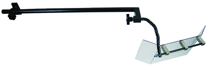 We took a standard Visorguard and made a new body which attaches to a 1" diameter tube 30 inches long. The tube slip fits into our No. 13068 mounting bracket which is included in the device. The 30 inch tube plus the Flexbar Flexarm length provides 40 inches of reach. The extension tube is retractable in the socket of the mounting bracket so that it can be set up for smaller distances from point of attachment to the ideal setting of the Visorguard shield.